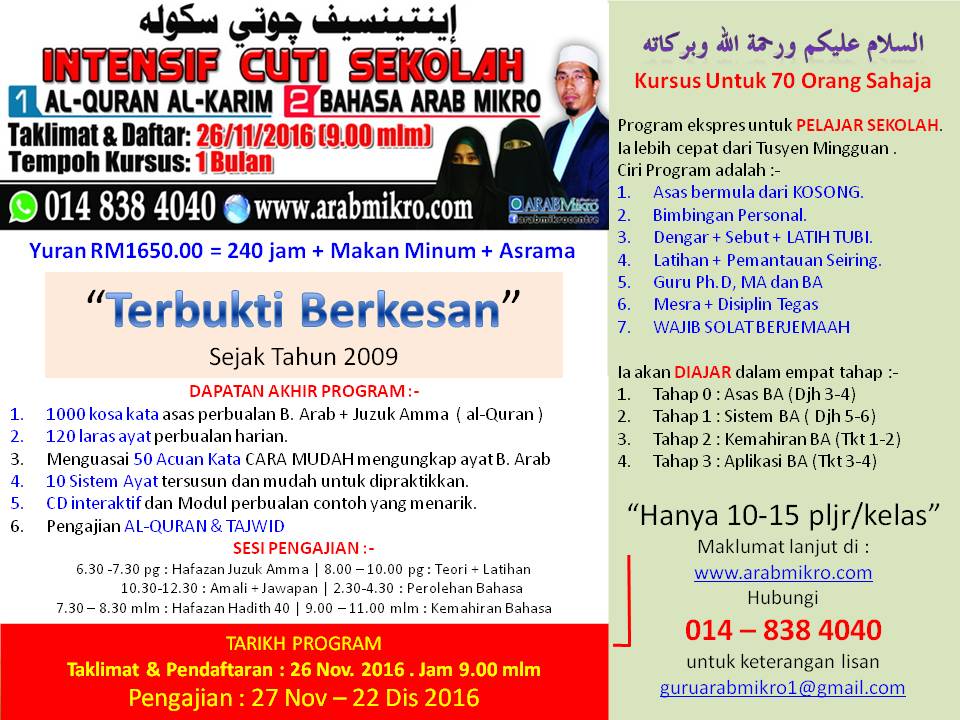 INTENSIF BAHASA ARAB Kem Cuti Sekolah NOV-DIS 2019