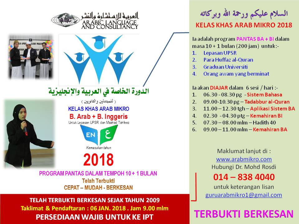 Kelas Khas Arab Mikro 2018 (B. Arab + B. Inggeris) Untuk Lepasan UPSR dan Maahad Tahfeez