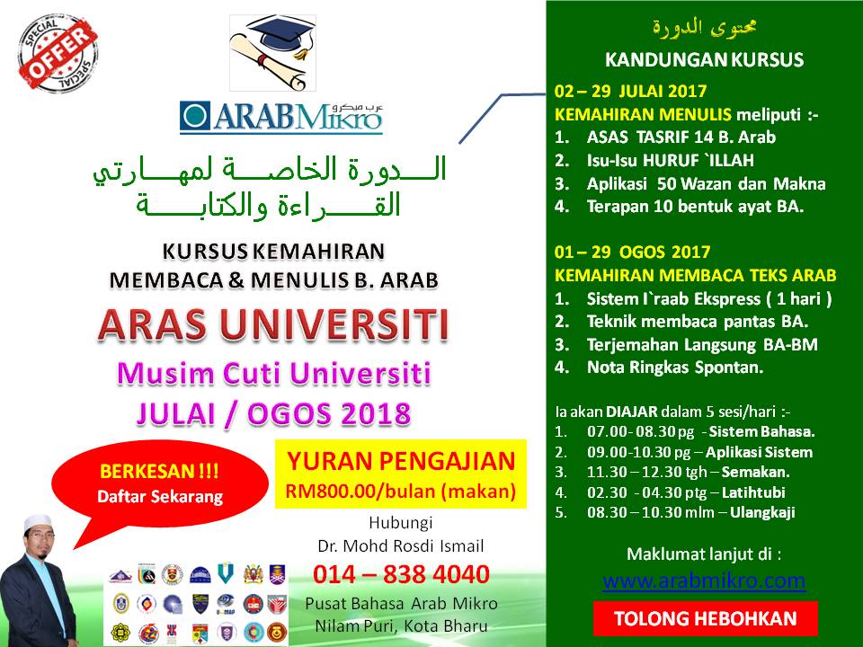 BERCUTI SAMBIL BELAJAR KEMAHIRAN MEMBACA DAN MENULIS BAHASA ARAB ARAS UNIVERSITI : JULAI – OGOS 2018