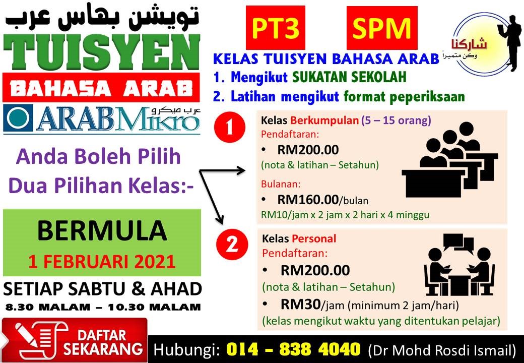 Kelas Khas Arab Mikro 2018 (B. Arab + B. Inggeris) Untuk Lepasan UPSR dan Maahad Tahfeez
